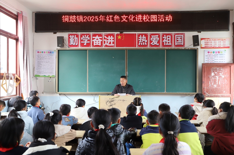 “1934年12月15日下午,红军到达铁门坎,金祖典的前哨被红军打得仓皇逃回铜鼓,红军一鼓作气乘胜追赶到铜鼓的乐安屯……我们要学习先辈不怕苦不怕累的精神,努力学习”近日,锦屏县铜鼓镇关工委组织退休老干部简经部到铜鼓小学开展红色文化宣讲活动,通过通俗易懂的言语讲述红军铜鼓战斗的具体经过,让红色基因融入青少年血脉。