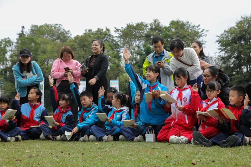 随后,敦寨镇林业站工作人员带领大家学习《古树名木保护条例》,并通过科普课介绍县内古树种类、生长现状及保护措施。亲子家庭积极参与“解码百年树语”智慧竞答赛,氛围热烈。