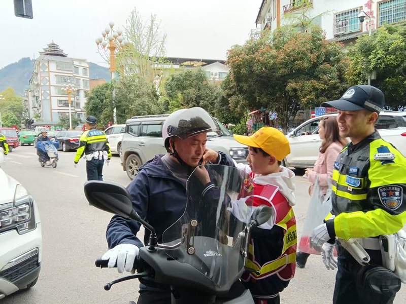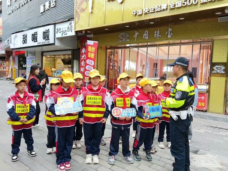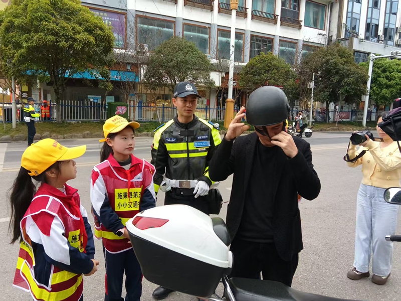 为进一步增强学生的交通安全意识,培养文明出行习惯,4月2日,施秉县公安局交管大队民警带领县第五小学部分学生走上街头开展交通安全实践活动,通过劝导路上行人遵守交通规则,骑行摩托车电动车配戴好安全头盔等实地体验和互动学习,让学生深入了解交通安全知识,筑牢安全出行防线。(王 凯)