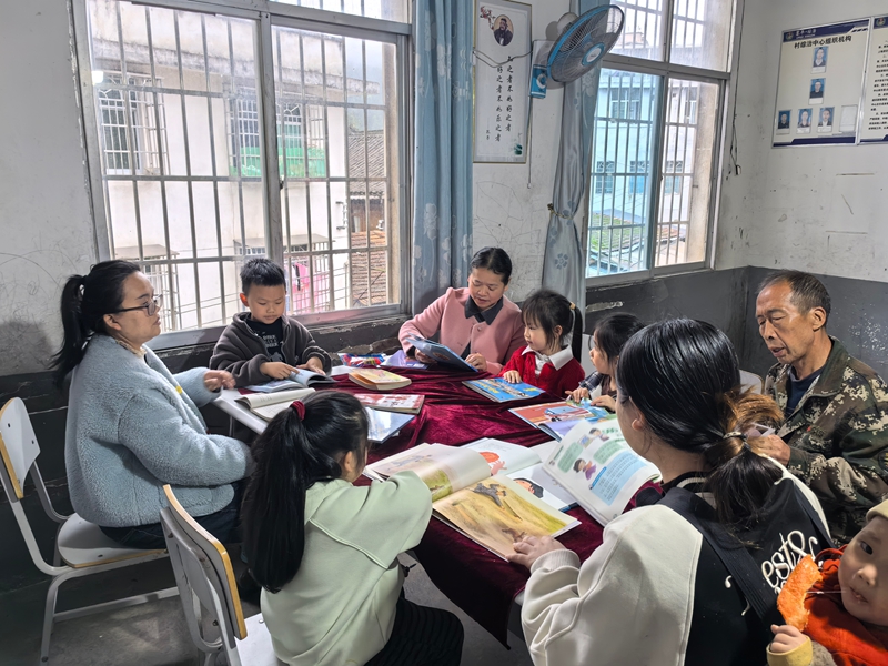 村级文明实践站内更是一副热闹景象。教师、家长带领孩童们开展经典朗诵,《弟子规》《少年中国说》的稚嫩声线回荡院落;群众围在“好书推荐角”,互相交流《栽培技术大全》《养猪指南》等实用书籍的阅读心得,“这本书讲果树修剪的,比听讲座还明白!”群众杨礼启捧着书笑嘻嘻的说道。