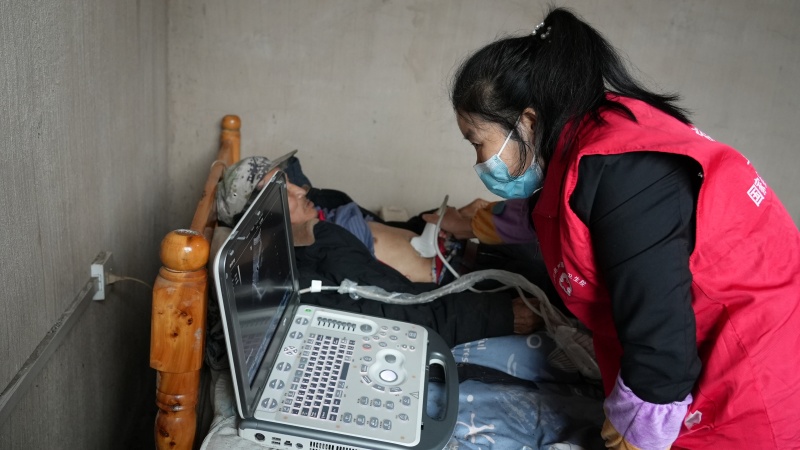 清晨,镇远县㵲阳镇中心卫生院的医生和护士手提便携式B超机、心电图仪、尿液分析仪等设备,敲响了箱子岩村黄组芝老人的家门。黄奶奶因交通和行动不便难以出门体检,医护人员的到来,让她足不出户就完成了一次全面的健康体检。刚检查完的黄奶奶感激地说:“我出不去,他们就来到家里帮我们检查,态度又好,又方便,太感谢了!”