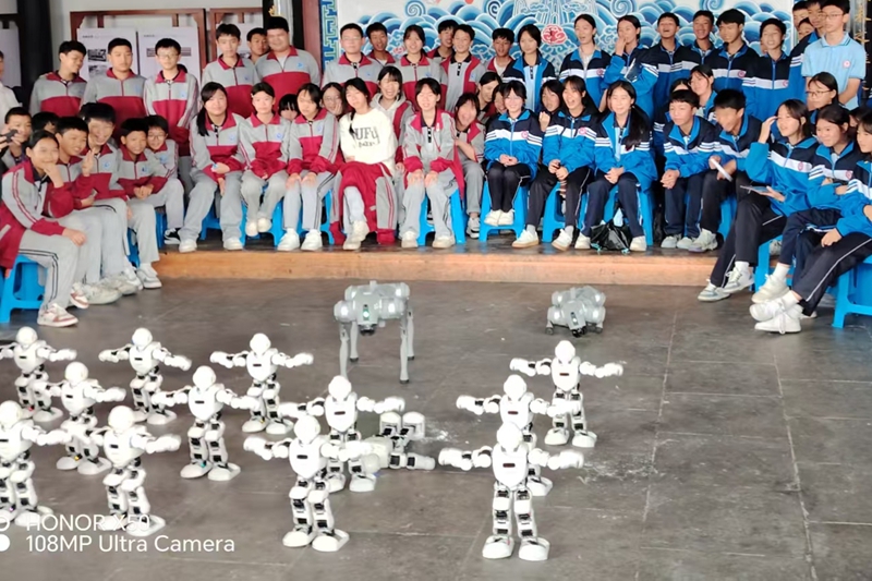 人工智能知识科普与演示环节则充满未来感。县科协工作人员围绕人工智能知识、生活应用场景及未来发展趋势展开讲解,帮助公众快速理解AI的实用价值;机器人舞蹈、机器狗灵活穿梭等演示,更是让大家直观感受到科技的创新力量,不少孩子驻足观看,眼中满是好奇与向往。