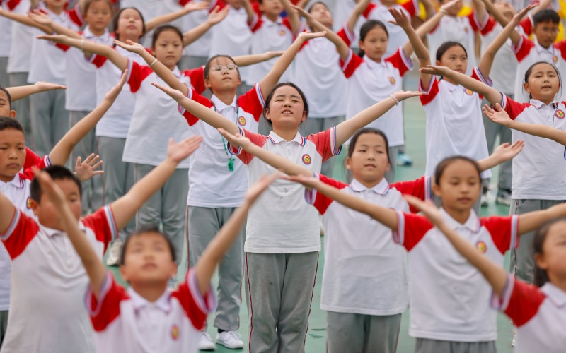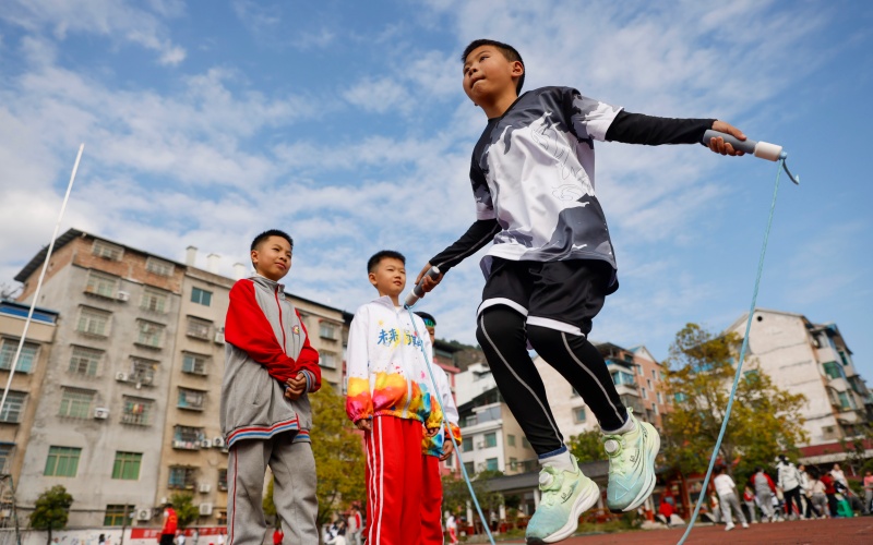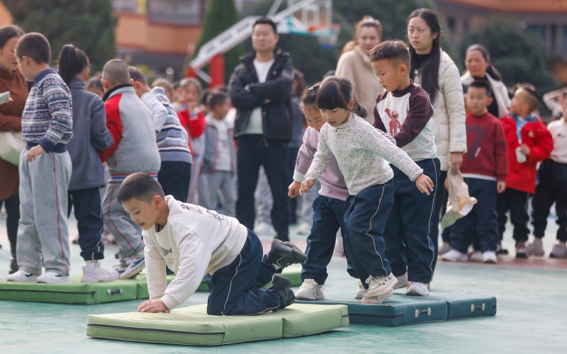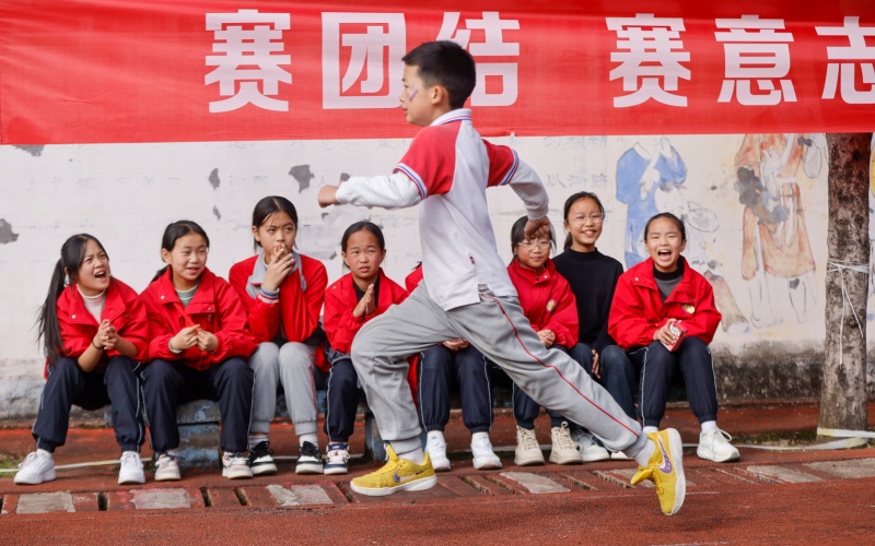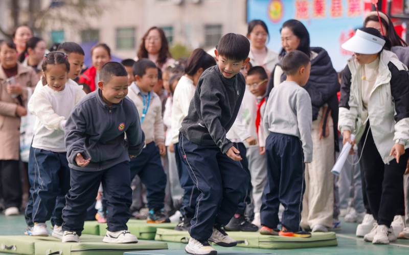 11月20日,施秉县第二小学举办冬季校园运动会。运动会设置了入场式表演、大课间操、田径、球类等项目。学生们在赛场上充分展现了朝气与活力,尽情享受运动带来的快乐。(磨桂宾 摄)