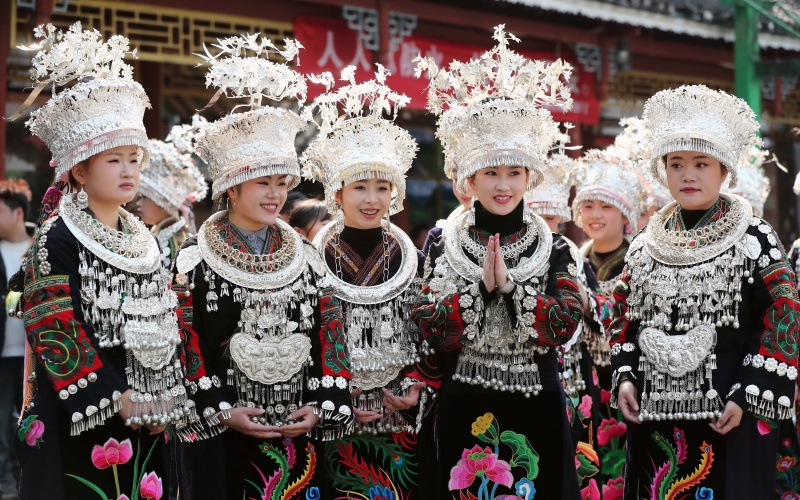 当日是大年初三,榕江县平阳乡丹江村,苗族同胞身穿节日盛装,吹芦笙、跳芦笙舞,以传统民俗的方式欢庆新年。(李长华)