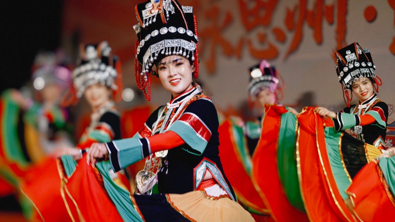 现代歌舞《爱你爱我》则瞬间点燃现场氛围。青年演员们身着亮色服装,踏着动感节拍起舞,动作活力四射、充满朝气。他们用轻快的舞步、昂扬的姿态,展现出新时代青年积极向上的精神风貌,更传递出年轻一代扎根基层、服务家乡的担当,不少观众跟着节奏轻轻点头,现场氛围愈发热烈。