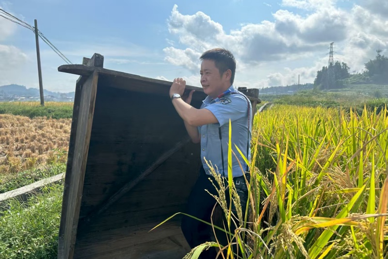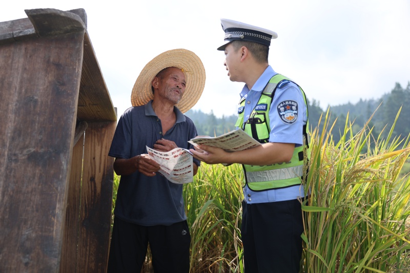 近日,天柱县正值秋收农忙季,高酿镇万亩大坝上满是群众忙碌劳作的身影,天柱县交警大队针对农忙时期交通违法行为陡升现象作出相应部署,组织宣传民辅警走进田间地头,向正在抢收稻谷的群众宣讲交通安全知识,提醒他们自觉抵制酒驾醉驾、超员超载、农用车载人等交通违法行为,提升群众安全防范意识,降低交通事故风险。(龙仲涌)