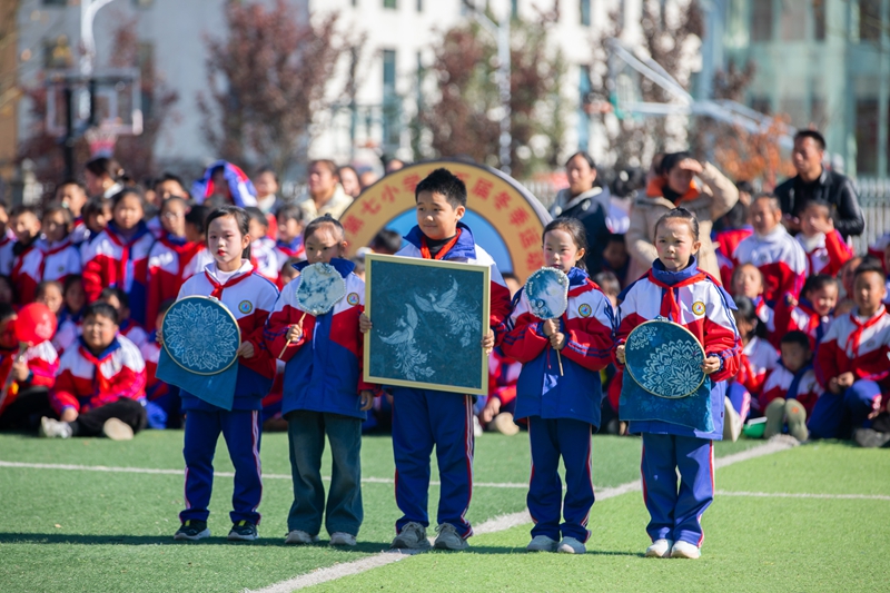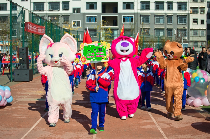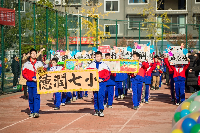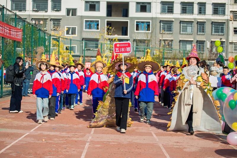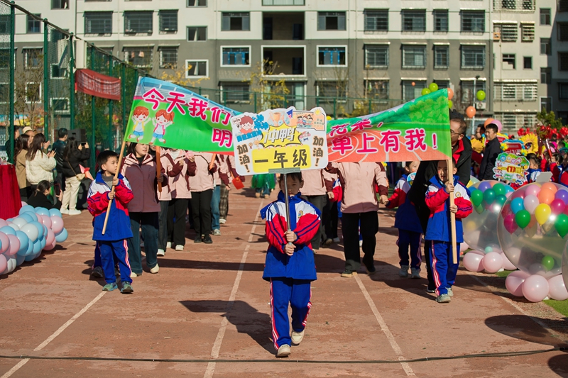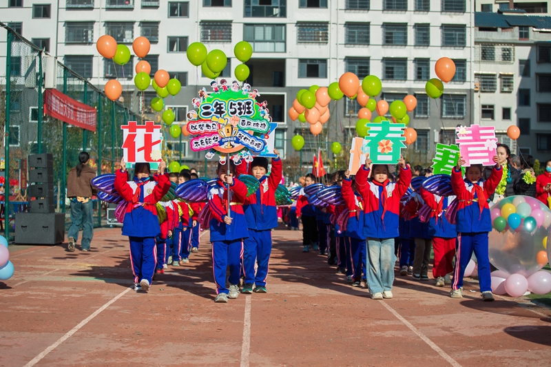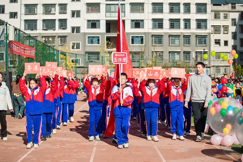 开幕式在庄严的升国旗仪式中拉开序幕,五星红旗 冉冉升起,全体人员肃立行注目礼,爱国之情油然而生。随后,各班级方阵身着特色服装,手持鲜艳横幅,迈着整齐步伐依次入场,“民族团结一家亲,奋勇拼搏向未来”等嘹亮口号响彻校园,充分展现了七小学子的蓬勃朝气与团结精神。各年级教师特色方阵紧随其后,老师们身着统一主题服装,精神抖擞、步伐坚定,彰显了教职工队伍的凝聚力与向心力。