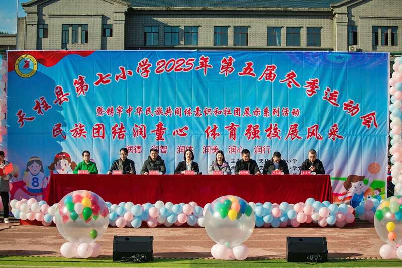 冬日暖阳洒校园,民族团结谱新篇。为深入推进“五育并举”教育方针,传承民族团结精神,彰显“体育强校”办学特色,11月19日,天柱县第七小学2025年第五届冬季运动会开幕式在学校运动场隆重举行。上级主管部门领导、社会各界嘉宾莅临现场,与全校师生共同见证这一活力满满的时刻。