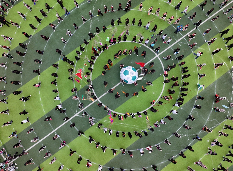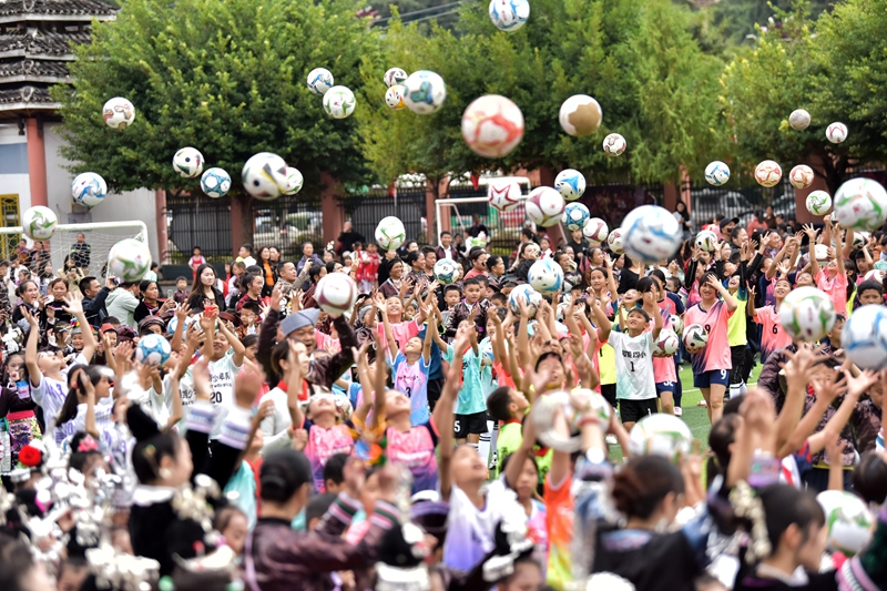 图为:2025年11月6日,从江县城关第四小学第四届“和美杯”班级足球超级联赛开幕式现场精彩瞬间。(龙梦前 摄)