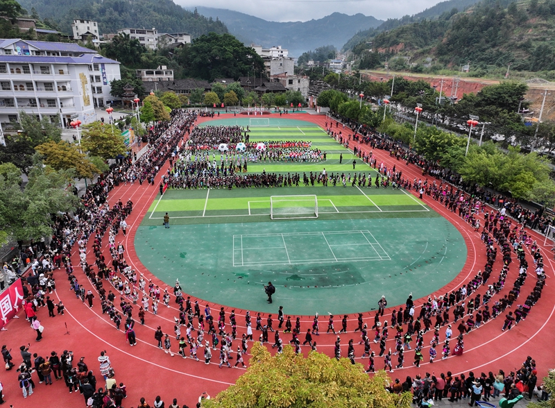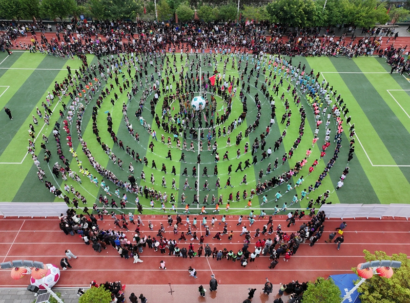 开幕式上,身着民族盛装的师生组成方阵依次入场,侗族大歌、芦笙展演、扎染刺绣等非遗元素与足球激情碰撞,绿茵场化身民族文化展演舞台,将体育竞技与文化传承、家国教育巧妙融合,为校园注入了蓬勃活力。生动诠释“会唱歌爱运动,民族非遗文化,厚植家国情怀”的育人理念。