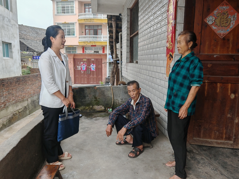 6月3日,阳朝村干净的办公室、镇村干部的亲切笑容和群众的热情问候,瞬间驱散了杨念琼的不安。她暗下决心:“一定要在这里闯出属于自己的精彩。”深知“行动胜于口号”的她,刚到村就挎起小挎包、揣上笔记本,开启了走村入户的旅程。“孃孃,晒辣椒呢?”“叔叔,孩子在哪上学呀?”亲切的问候打破了陌生感,短短一个多月,她就走遍了村头寨尾,从群众口中摸清了村里的“家底”。