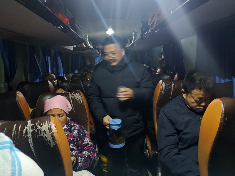 考虑到夜间低温持续、道路通行条件恶劣,中潮镇党委政府工作人员主动对接高速交警,实时紧盯道路通行动态,多方协调沟通通行事宜。凌晨时分,在交警的全程引导下,两辆滞留客车缓缓驶离卡点,安全前往黎平县城指定安置点。抵达后,工作人员全程跟进,协助旅客有序办理入住手续,确保每位滞留旅客都得到妥善安置,让旅客在寒潮中感受到暖心关怀。