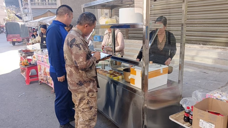 针对检查发现的个别摊贩卫生防护不到位等问题,工作人员当场提出整改要求,责令其立即整改,并做好后续跟踪复查,确保隐患整改闭环。