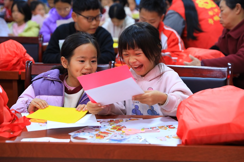 活动现场暖意融融,孩子们的脸上满是期待。活动伊始,中华儿慈会小爱也温暖基金捐赠的“小爱快乐包”便陆续送到孩子们手中。接过装满文具、益智用品与生活用品的书包,孩子们脸上绽开了灿烂的笑容。“书包里有象棋、口琴,还有跳绳,我太喜欢了!”杨孝鑫开心地说。