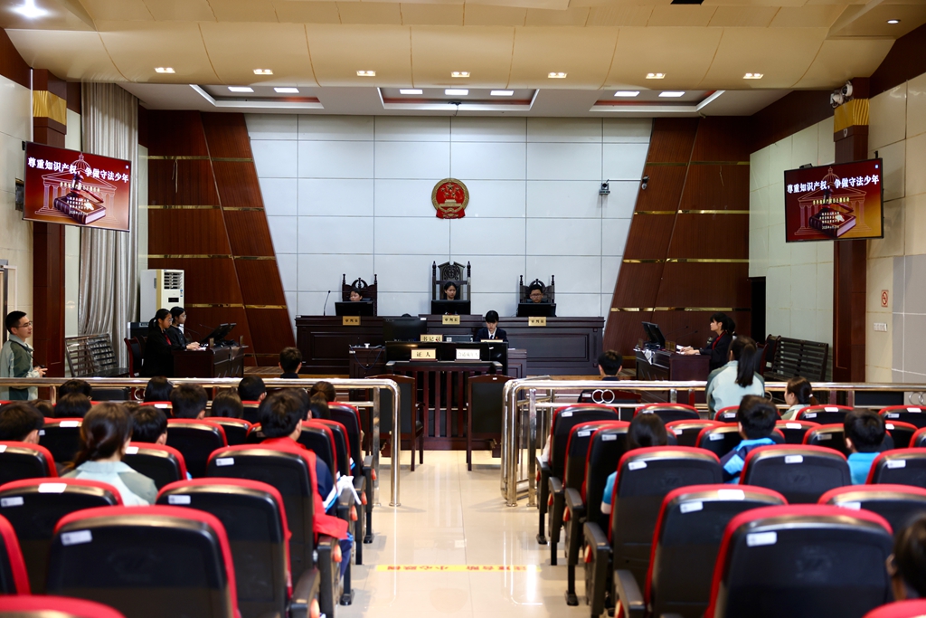 为迎接第26个世界知识产权日,加强青少年知识产权法治教育,引导青少年树立“尊重创造、保护创新”的法治理念,近日,锦屏县人民法院联合共青团锦屏县委、锦屏县第四中学,在法院第一审判庭开展“尊重知识产权·争做守法少年”主题普法活动。近百名师生走进法庭,通过沉浸式体验学习知识产权保护知识,让法治理念扎根青少年心中。