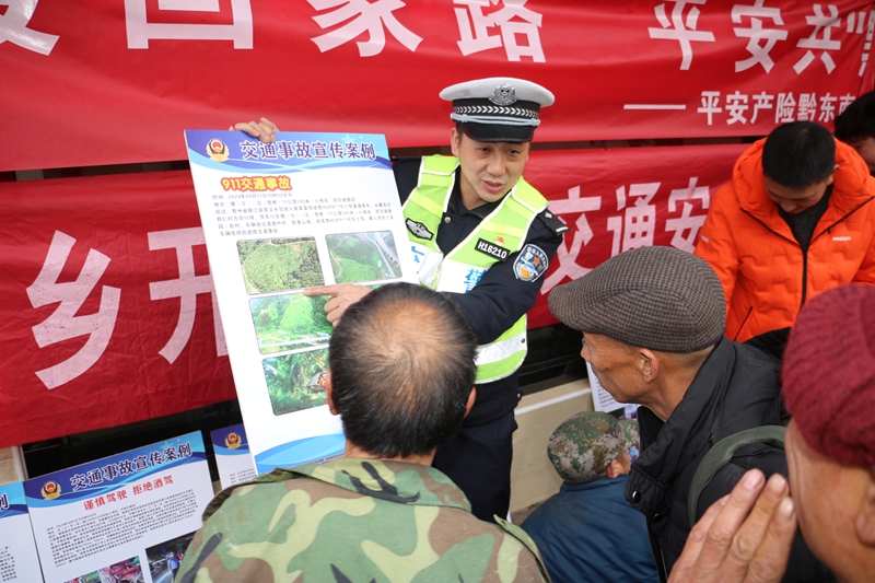 活动现场,宣传展台前人头攒动,“温暖回家路,平安共“黔”行”的横幅格外醒目。民警结合两汪乡山区道路弯多坡陡的特点,用苗汉双语讲解酒驾醉驾、农用车违法载人、骑乘摩托车不戴头盔等违法行为的危害,通过本地典型案例敲响安全警钟。