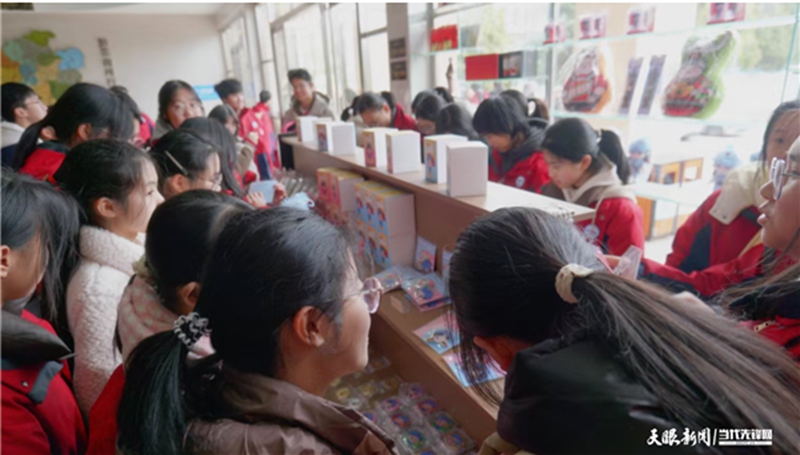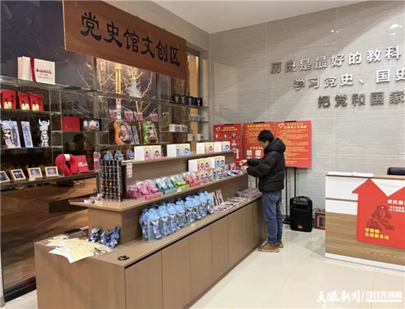 该文创区以“文化为根、品质为基、市场为向”为定位,强调产品融合地方特色与党史元素的创新理念。一系列兼具红色底蕴与苗侗风情的产品引人驻足。从活泼可爱的“小红军”手伴,到精致独特的民族风冰箱贴;从印有历史印记的典雅瓷杯,到设计简约的实用笔记本,每件产品都承载着一段历史记忆,又焕发着当代审美活力。开市当天,现场气氛热烈,全天参观人数达300人次,实现初步销售额400余元,游客纷纷表示产品“有故事、有温度、有创意”。