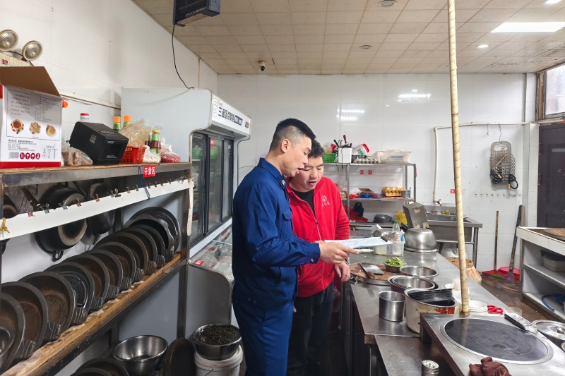检查过程中,消防员重点对餐饮场所内灭火器的配置数量、有效期、压力值是否正常,消防通道是否畅通,燃气管道、油烟管道是否存在老化泄漏,以及用电用火规范等情况进行逐一核查,并耐心讲解消防安全知识和火灾应急处置方法,督促商户落实消防安全主体责任,及时消除安全隐患。