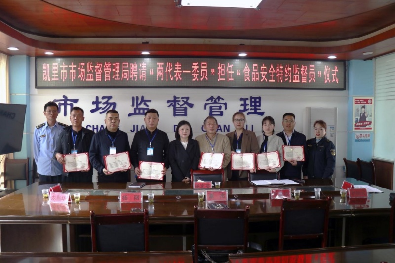 “五一”假期前夕,食品安全监督“新力量”在凯里市迅速集结上岗。4月23日,凯里市20名由党代表、人大代表和政协委员(简称“两代表一委员”)组成的“食品安全特约监督员”正式受聘,并同步启动了一项创新性的常态化监督工作制度。聘任仪式一结束,监督员们便“兵分多路”,与市场监管执法人员一道,深入下司古镇等热门旅游景区,开展节前食品安全“随行监督”,标志着该市在构建食品安全“共建共治共享”社会治理新格局上,迈出了制度化、实战化的重要一步。