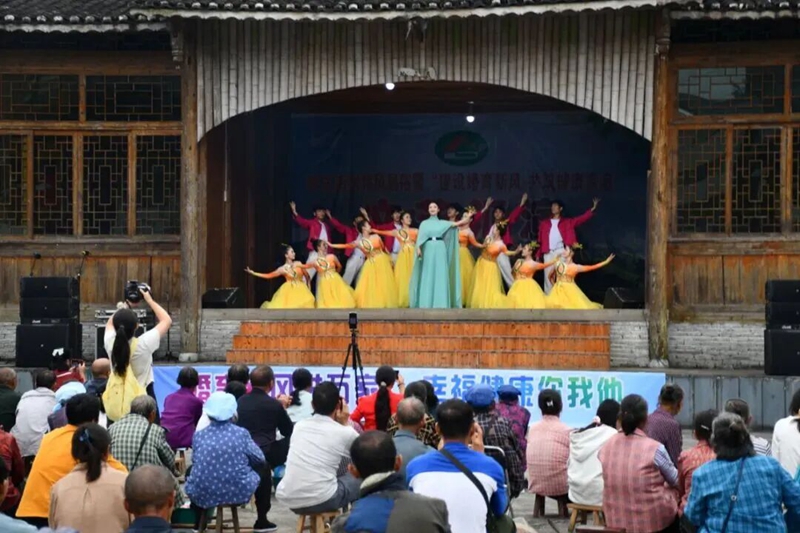 平敖村民间歌手唐荷英用侗语唱响《幸福生活万年长》,乡音唱出对美好生活的向往;州歌舞团情景快板剧《新风入万家》,通过“旧俗攀比”与“新风简办”对比,诠释勤俭节约;县妇幼保健院小品《无痛分娩快乐多》,以产房场景科普无痛分娩,破除认知误区;平敖村文艺队快板《新风新育》歌颂新时代,州歌舞团歌伴舞《爱你爱我》以家国情怀、乡村振兴等主题收尾,为汇演画上圆满句号。