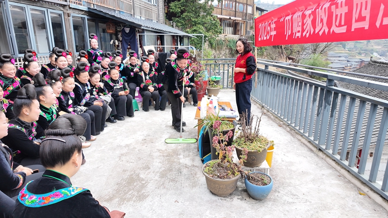 为提升妇女家政服务专业化水平,拓宽乡村旅游配套就业渠道,近日,雷山县妇联在西江景区开展“巾帼家政进景区”专项技能培训,以“送技上门+实景教学”模式,精准对接民宿与家庭实际需求,助力景区及周边妇女掌握实用技能,为本地旅游服务提质与妇女居家就业注入强劲动能。