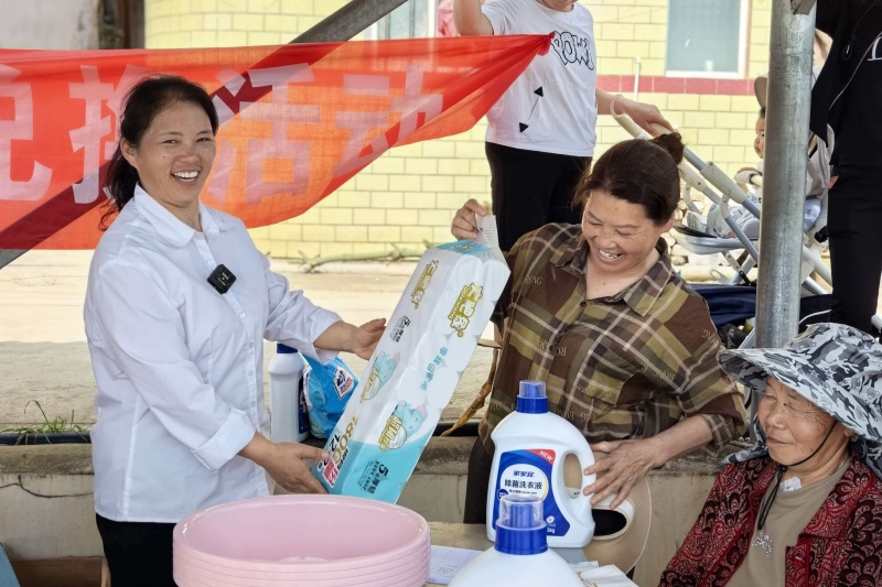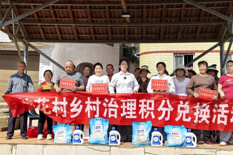 4月10日,柿花村篮球场上热闹非凡,经过第一季度卫生评比脱颖而出的“卫生整洁示范户”们,正有序排队领取洗衣液、卫生纸等实用礼品。村民吴庆群捧着印有“户户讲卫生 环境更优美”的红色荣誉牌,脸上洋溢着自豪:“现在村里比卫生、赛整洁成了新风尚,谁都不愿落在后头。”