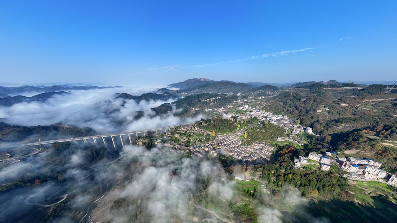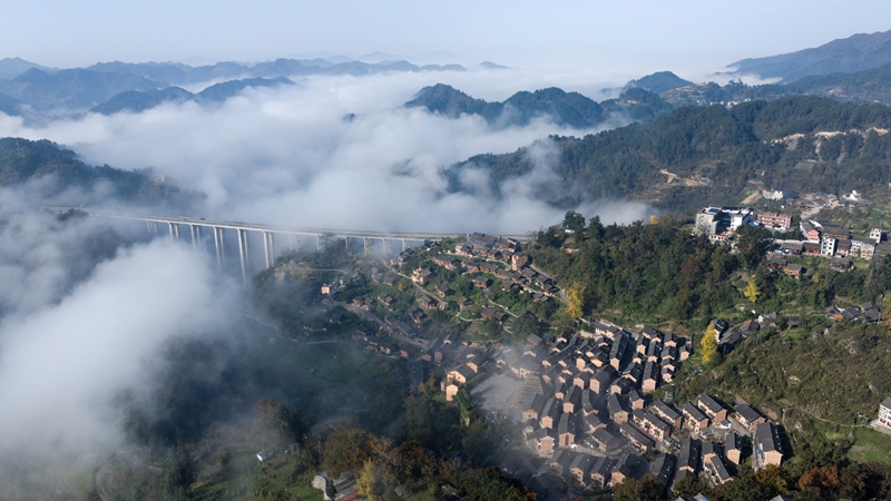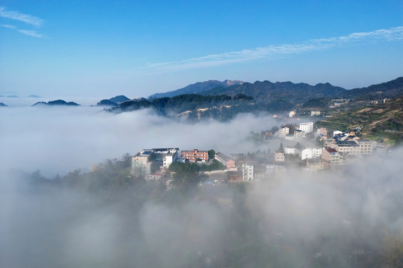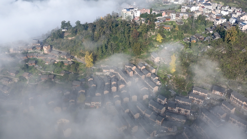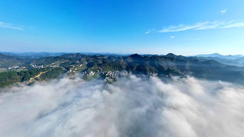 初冬时节,镇远县报京乡的报京侗寨迎来了一年之中最为梦幻的时刻。连日来,当地出现壮美云海景观,连绵群山与古朴村寨在蒸腾舒卷的云涛间若隐若现,仿佛一幅天然绘就的水墨长卷,美不胜收。