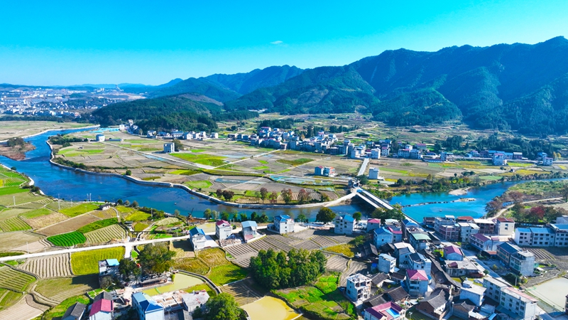 青瓦白墙的村寨沿河岸铺展,窨子屋封火墙隐在新绿间,墙面粉彩仍留江南移民的匠意;亮江古渡口旁,新翻的稻田泛着浅褐,田埂油菜泛着绿意,复刻《迪光录》“川水四环、内勤耕耨”的旧景,更添生态农业的新韵。