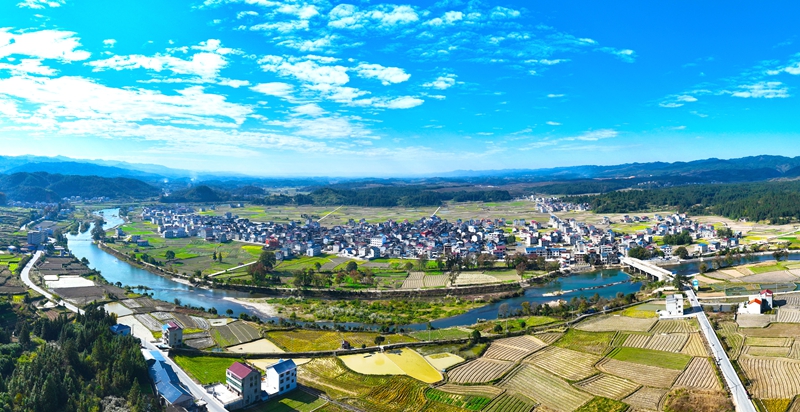文昌阁飞檐下,村民身影往来穿梭,昔日双樟书院的书声,换成田埂上的农耕吆喝;亮江大桥取代了传说中的万元桥,桥边菜畦里,农人身着布衫弯着腰,指尖不停地移植菜苗,泥土裹着的裤脚沾着新露——这是“生态+产业”的振兴底色:杉木林翻起墨绿浪涛,吊井水映着流云碎影,水渠叮咚与酒令歌余韵交织,把千年耕织烟火,酿成生态宜居的新图景。