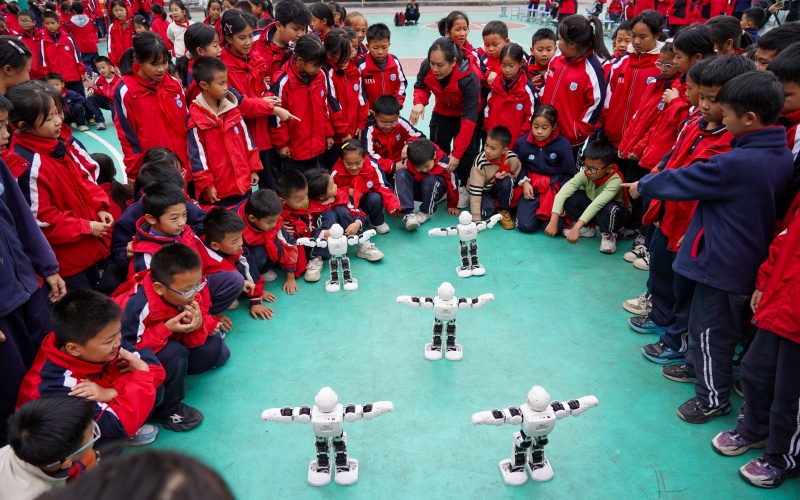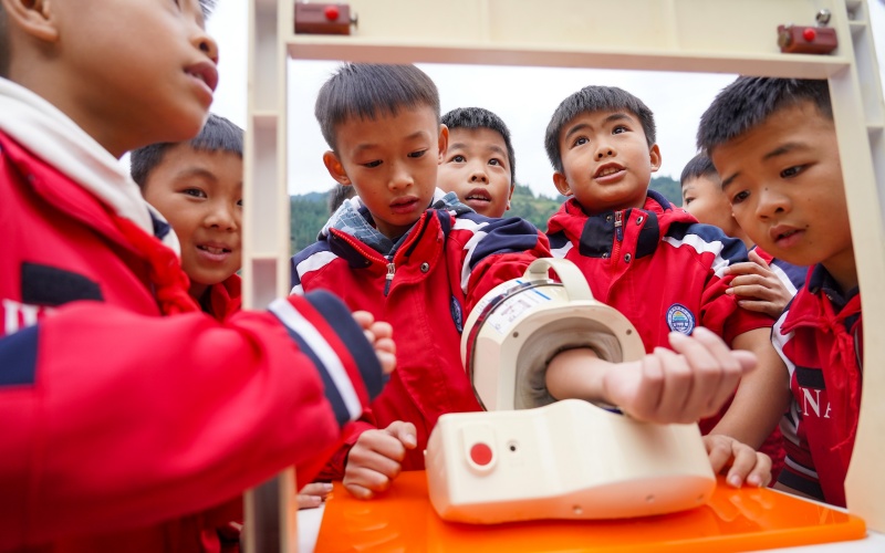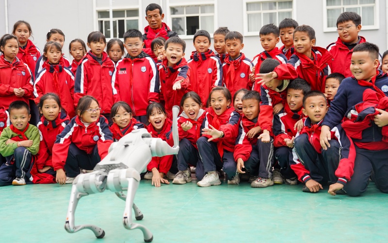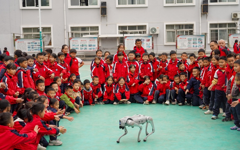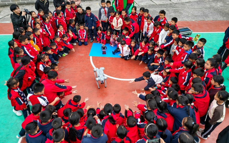 当日,中国科学技术馆、教育部宣传教育中心等工作人员走进从江县城关第四小学举行以“人工智能润山乡,科普之光耀童心”为主题的科普进校园活动。现场通过开展科普讲座、机器狗表演、机器人舞蹈秀、科学表演秀等一系列活动,激发学生创新创造意识和科学探索精神,让师生近距离感受科技的独特魅力。(卢忠南 摄)