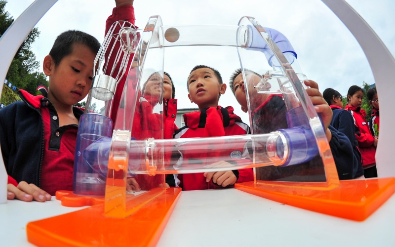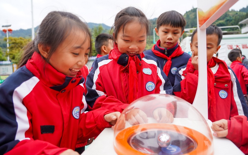 10月22日,从江县城关第四小学的学生在体验科普展品。