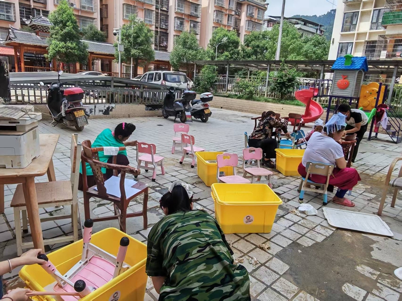 2025年6月24日,榕江县遭遇历史罕见特大洪水,富民社区儿童之家受损严重。站内设施被洪水浸泡,玩具、书籍、学习用品等物资悉数损毁,场地内淤泥杂物堆积,原本充满欢声笑语的活动阵地沦为一片狼藉。洪水退去后,驻站社工心急如焚,第一时间发起志愿者招募,希望尽快清理站点,让孩子们重返乐园。