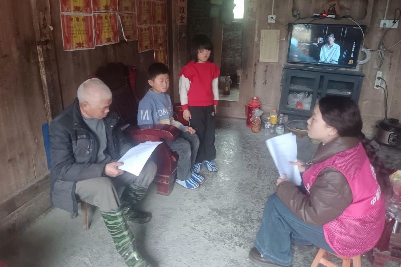关爱重点群体,传递温情呵护成长。聚焦留守儿童、困境儿童等特殊未成年人群体,崇义乡依托既有的“爱心妈妈”结对机制,在寒假期间深入开展专项关爱活动。“爱心妈妈”们通过上门走访、线上联络等方式,加强与结对儿童的日常互动,提供学业辅导、心理陪伴和假期安全提醒,用持续的关注与陪伴温暖童心。同时,村干部、“爱心妈妈”等在走访慰问时发放《致返乡家长的一封信》,嘱托家长履行好监护主体责任,充分利用春节团聚时光,加强亲子沟通,关注孩子身心健康与安全,共同守护孩子茁壮成长。