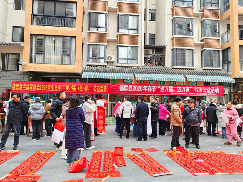 新春将至,年味渐浓。为深入推进新时代文明实践工作,营造喜庆祥和的2026丙午马年氛围,近日,由锦屏县新时代文明实践中心、县总工会、县文学艺术联合会联合主办,县书法家协会承办的“万福迎春”暨“送万福、进万家”书法公益活动,在县文化中心广场、赤溪坪社区开展。活动以笔墨为媒,将新春祝福送入千家万户,让中华优秀传统文化在基层落地生根。