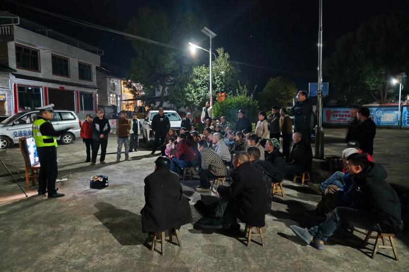 岁末年初,杀猪宴、走亲访友等活动增多,农村地区交通出行频繁。1月13日晚,镇远县江古镇联合镇远公安交警,在江古镇江古村开展冬季交通安全“坝坝会”宣讲活动,将安全知识精准送达群众家门口。
