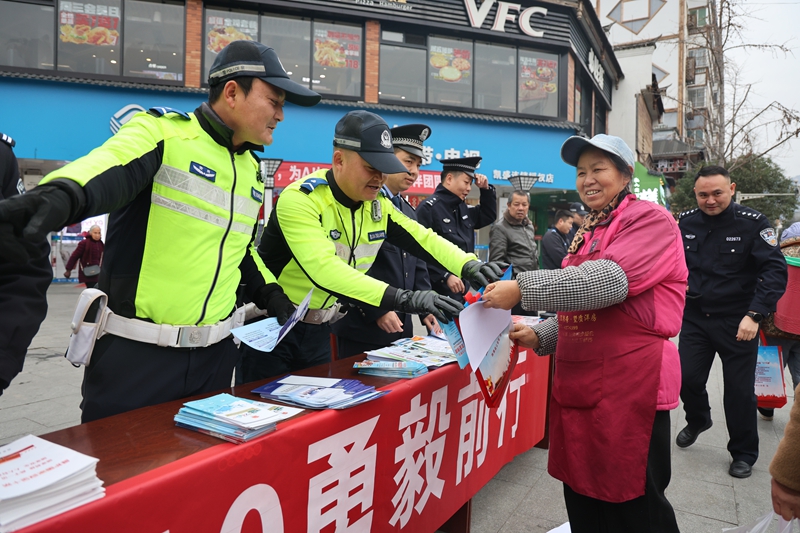 2026年1月10日,第六个中国人民警察节如约而至。为充分展现公安队伍的良好风貌,深化和谐警民关系,增进社会各界对公安工作的认知与支持,1月9日,施秉县公安局组织特巡警、交警、禁毒等多警种,在雨石水街广场开展“四十载守护平安 110勇毅前行”集中宣传活动。