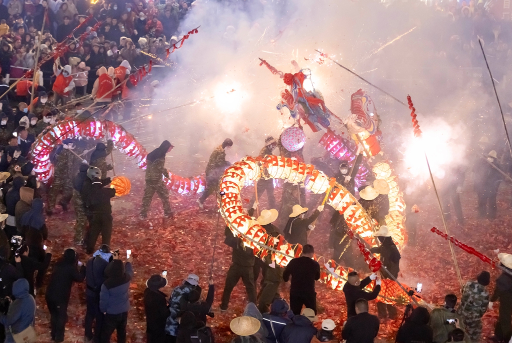 最令人期待的当属2月27日正月十一的“焰火勇士—炸龙狂欢”。当晚,施秉县城关镇10个社区的亮龙队伍将齐聚十字街,舞龙者身着盛装,甚至赤身裸背,在漫天烟花爆竹中翻滚腾跃,任凭火花沾身、炮火炸顶,依旧身姿矫健,将施秉人勇敢豪爽的特质展现得淋漓尽致。与此同时,“龙行施秉·福入万家”接龙接福活动同步开展,企业、商户、小区争相迎接龙灯,祈求新岁吉祥。
