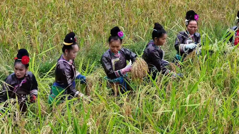 “今年雨水好,列珠糯一穗能有百来粒,老田种这个最香!”村民的赞叹道出丰收喜悦。香禾糯不仅是侗家人的主食,更融入婚丧嫁娶、祭祀祈福等礼仪,是村寨的“灵魂作物”。今年全村种植香禾糯3000亩,亩产香禾糯大米约350斤,总产值达945万元,为村民带来可观收益。