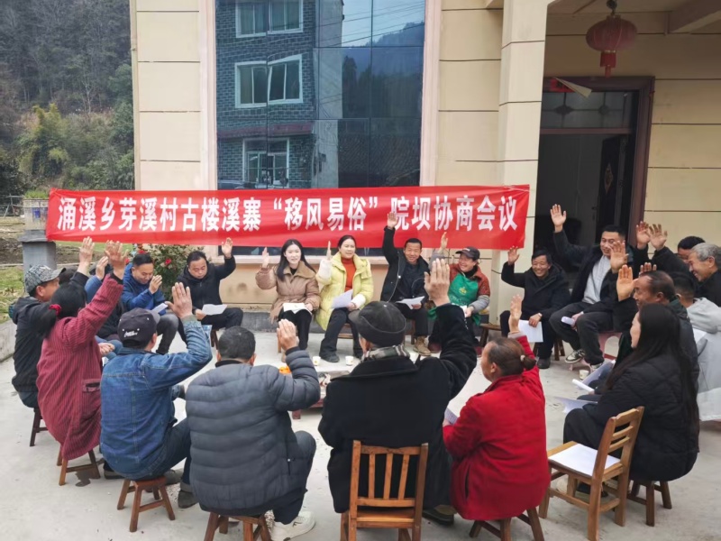 深化院坝协商治理,凝聚群众共治合力。坚持民事民议、民事民定,以院坝(社区)协商为改革抓手,推动移风易俗从“政府推动”向“群众共治”转变。围绕规范办酒席、彩礼管控等核心议题,组织党员群众代表围坐协商,充分吸纳民意、凝聚共识,将酒席名目、规模标准、彩礼上限等群众关心的“关键小事”纳入村规民约,实现共建共享。2026年以来,全乡召开移风易俗院坝(社区)协商会6场次,修订完善村规民约6项,有效遏制违规办酒、大操大办等陋习,群众自治活力明显提升。
