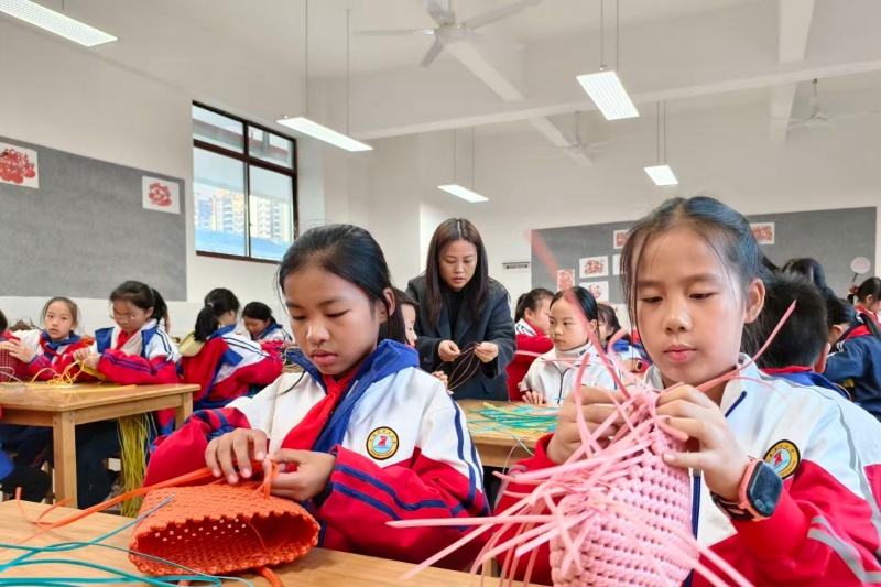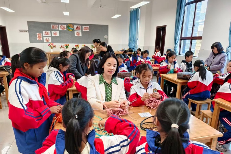 分管社团工作的杨慧灵副校长是多元育人平台的“搭建者”与“守护者”。为丰富校园文化生活,促进学生个性发展,她牵头组建20多个校级兴趣社团,涵盖艺术、体育、传统文化三大类,形成特色鲜明的社团育人矩阵。其中,作为传承传统手工艺的核心载体,手工编织社团凭借独特的育人价值,成为校园里最具人气的社团之一,与葫芦丝、舞蹈、田径等社团共同勾勒出多彩校园图景。