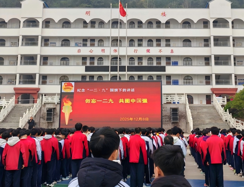 12月8日,坝芒中学举行“一二·九”运动纪念活动,全校师生齐聚一堂。学生代表在国旗下以《铭记一二·九,青春践担当》为题发言,带领全校师生重温那段热血沸腾的历史,感受先辈们的爱国情怀与担当精神。随后,举行入团仪式,7名同学光荣入团,新老团员面向团旗庄严宣誓,誓言铿锵有力,彰显为团组织增光添彩、为国家繁荣贡献力量的坚定决心。