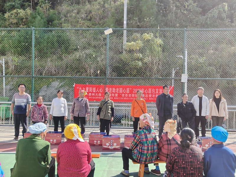 此次活动以“重阳敬老”为主题,将“惠民、利民、便民”的要求融入各个环节。活动由贵州省慈善总会、贵州大曲点滴有爱基金支持,锦屏县委社会工作部、县民政局、三江镇等联合主办,半天娇社会工作服务中心承办,形成“政府引导、社会参与、专业执行”的文明实践合力,是新时代文明实践“整合资源、共建共享”机制的生动体现。前期,驿站工作人员与社工深入摸排老人需求,定制包含米、油、洗洁精等秋冬实用物资的50份心愿包,让服务精准对接老人的“急难愁盼”。