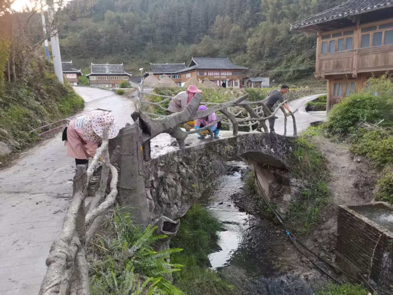 村“两委”始终锚定民生导向,将解决群众急难愁盼作为环境整治核心抓手,靶向施策补齐基础设施短板。投入10.57万元实施人畜安全饮水提质工程,新建60立方米蓄水池1座,铺设Pe65主管网500米、25管支管网2000米,彻底破解几玛寨51户257人饮水安全痛点。针对公共区域周边养殖设施异味扰民问题,通过政策引导、示范带动,推动农户自主拆除并升级改造4处养殖设施,因地制宜改建为侗族特色画展室、便民厨房等实用空间,实现居住环境净化与空间功能优化双提升。精心实施寨内步道维修升级工程,采用C25混凝土硬化步道1800平方米,砌筑道路护坎390余立方米,有效破解老年人、儿童出行不便的民生难题,让村民在环境整治中收获看得见、摸得着的获得感、幸福感与安全感。