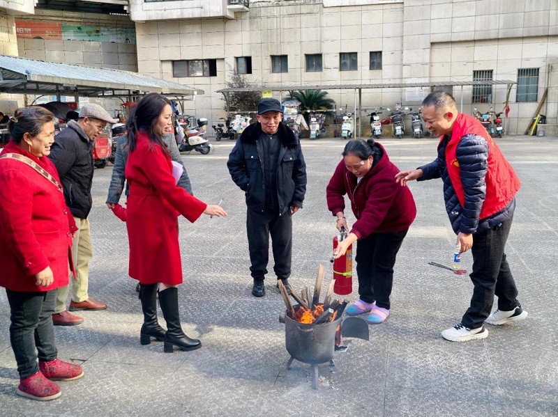 消防演练“实战化”,让应急技能“学得会、用得上”。实行场景化、实战化训练,组织各村(社区)模拟火灾突发事件积极开展应急消防演练,组织群众模拟“楼道浓烟逃生”,现场实操灭火器“提、拔、握、压”技巧,提升群众消防器材使用熟练度、火灾扑救能力和逃生自救能力。同时,采取“演练+知识普及”相结合的方式,细致讲解火灾成因、常见火灾隐患、应对技巧等内容,增强群众安全意识。入冬以来,已开展演练10场,覆盖群众200余人。