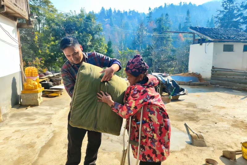 岁末天寒,暖意不减。为切实保障村内弱势群体安全温暖过冬,近日,从江县登岜村“两委”、驻村工作队牵头组织开展“寒冬送温暖,关爱显真情”走访慰问活动,为村里的孤寡老人、低保家庭、重度残疾人及困境儿童等特殊群体,送去组织的关怀与冬日的问候。