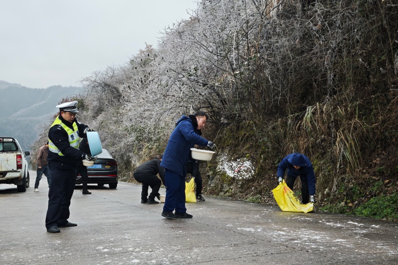 连日来,施秉县白垛乡遭遇大范围寒潮,全乡道路不同程度结冰,其中石家湾至新光、半河、芹菜塘至赶场坝沿线结冰严重,群众出行受阻。白垛乡立即启动应急预案,联动乡派出所,组织志愿突击队伍全力开展抗凝保畅、撒盐除冰作业。