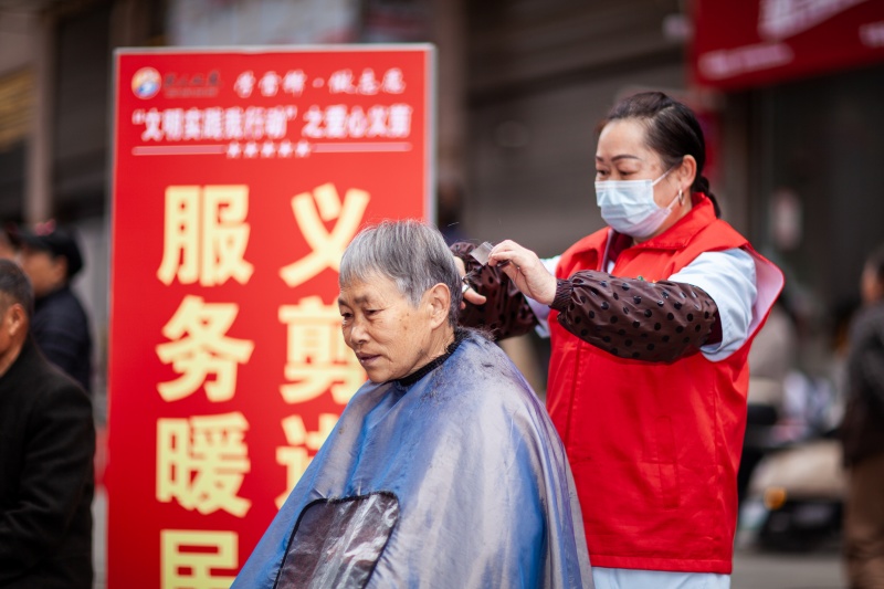 义诊区里,县人民医院医护人员为群众免费测量血压、血糖,开展中医针灸,细致开展心肺听诊、白内障筛查等检查,耐心解答健康疑问并发放宣传手册;义剪区的志愿者们手持剪刀、梳子,为老年人、残疾人等特殊群体修剪发型,让大家在家门口享受贴心服务;普法与安全宣传区,公安、法院、司法等部门工作人员围绕宪法、民法典等法律法规,开展反电诈、禁毒禁赌等宣传,现场为群众解疑释惑。