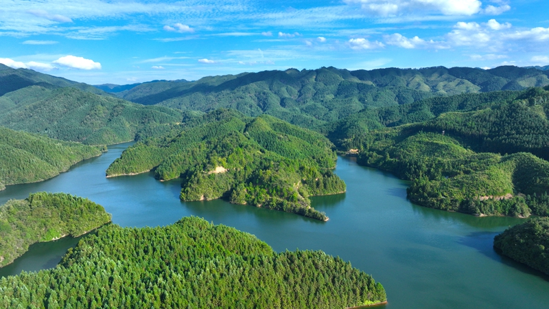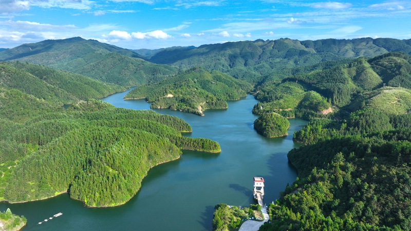 岸之绿,绿得如泼墨的画。连绵的山是大地的褶皱,被层层叠叠的绿填满,深的、浅的,在秋阳下泛着柔光。林木沿着水岸疯长,把水库裹成一块翡翠,偶有飞鸟掠过,惊起的不是喧嚣,是满目的翠色在风中轻轻颤,颤出了秋的空灵,颤出了天地的悠远。