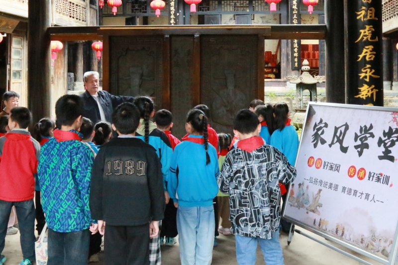 活动当天,镇关工委常务副主任吴展和带领孩子们走进吴氏总祠“家风学堂”,近距离参观宗祠建筑、陈设,认真聆听吴氏先贤的家风故事、祖训家规,在实地实景中触摸传统文化的深厚底蕴,领悟家风传承的重要意义。