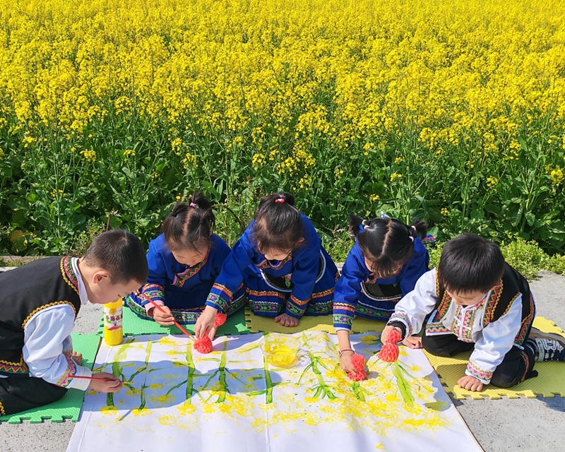 与此同时,依托得天独厚的自然景致,高酿镇将连片油菜花田、漫山梨花林拓展成“春日户外实践课堂”,组织学生走进田间地头、生态果园,开展农耕体验、自然科普、生态保护等“沉浸式”教育活动,将课堂延伸至广阔天地。“孩子们在花海里画画、在果园里劳动,笑得可开心了!”带队的吴老师感慨道。该镇还联合司法、派出所等部门,利用“五老”威望优势,通过院坝会、鼓楼讲堂等载体开展“侗汉双语”普法宣传,发放宣传资料800余份。